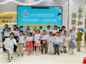 今年暑假,由新世界中国、永平街岭南新世界片区党群服务中心、永平街新时代文明实践所、永平街“双百工程”社工服务站主办,永平街新顺社区党委、倚云天社区党委、蝶云天社区党总支协办,联合广州市伟博儿童福利基金会、广州锦日物业服务有限公司等社区合伙人开展的“欢迎小候鸟”公益夏令营,在岭南新世界片区党群服务中心顺利举办。这场为期3周的夏令营,以“邻聚力 永平和”为核心理念,精准聚焦“小候鸟”群体面临的看护缺口与文化融入难题,通过系列主题活动的系统设计,为外来工子女和困境儿童搭建起将艺术探索、广府文化传承和亲子互动融于一体的成长支持平台。孩子们不仅在粤语童谣、主题绘画与手工创作中拓宽视野、锻炼能力,更在温馨的亲子陪伴中强化情感联结、增强社区归属,真正实现了一个有人陪、有艺学、有爱暖的快乐暑假。